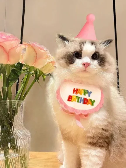 Colorful Pet Birthday Bandana & Party Hat Set for Cats and Dogs